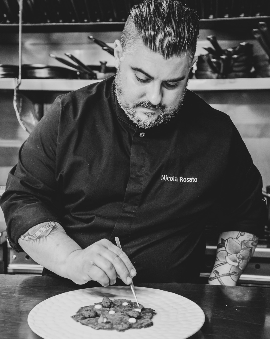 Ho sempre pensato che il lavoro dello Chef fosse anche quello di coach. Per i miei ragazzi sono una guida, è importante motivarli sempre con tutte le mie forze indipendentemente dalla situazione, così come fecero al tempo i miei Maestri. Per tenere unita la brigata, spesso in cucina metto la musica a palla. Incito i ragazzi come fosse una partita di calcio, così quando arriva la prima comanda sento ruggire dei leoni.